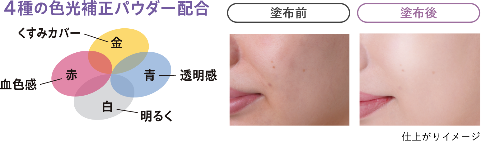 4種の色光補正パウダー配合でより自然に、